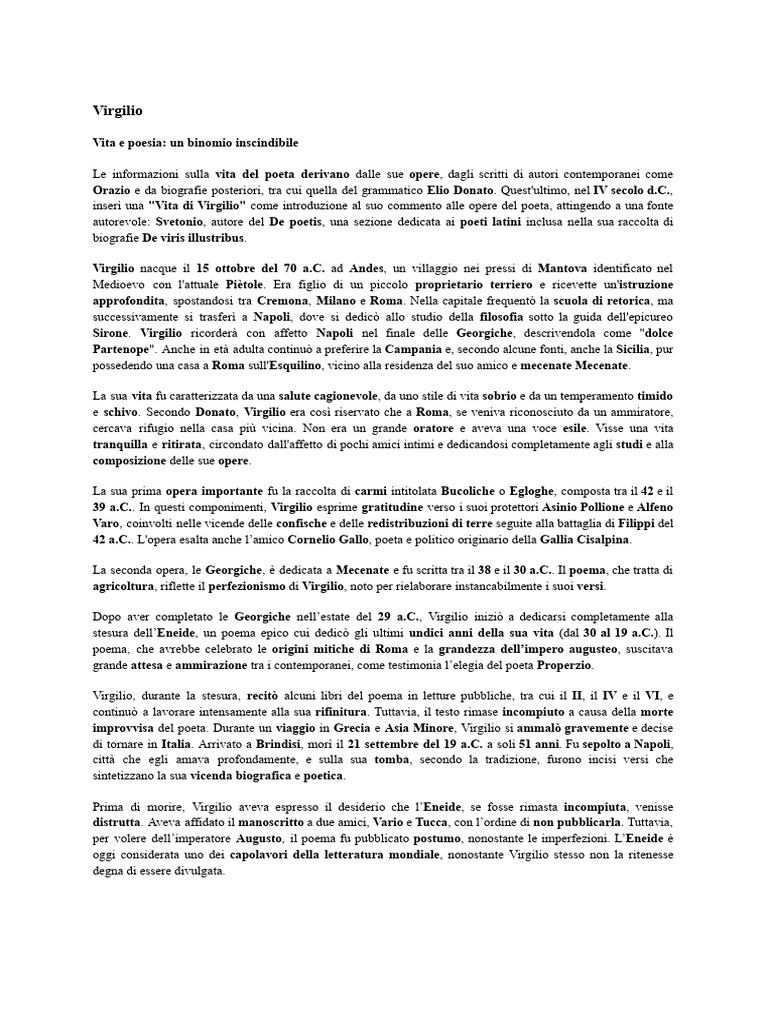 Il testo approfondisce la formazione culturale e artistica di Virgilio, ponendo l'accento sui fattori che hanno