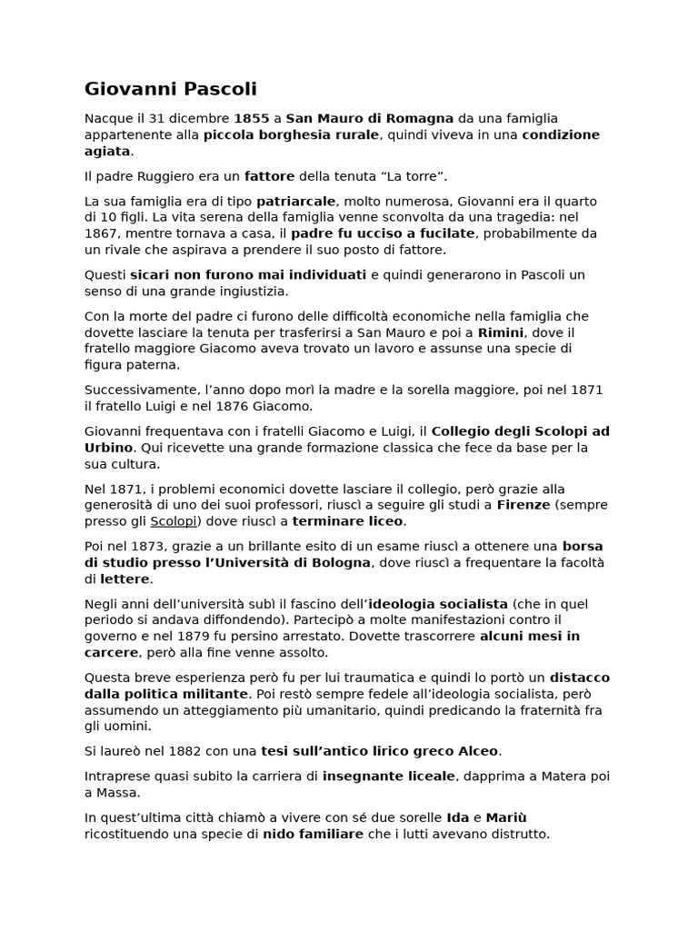 La formazione di Pascoli fu essenzialmente positivistica, lo si può vedere