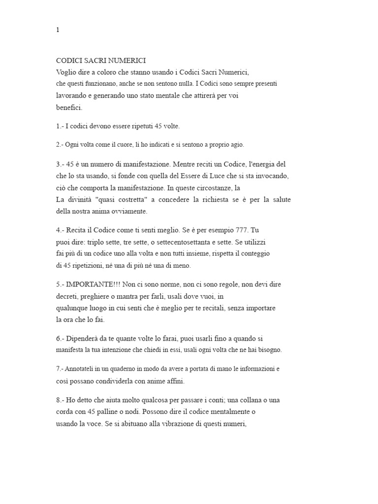 Voglio dire a coloro che stanno usando i Codici Sacri Numerici,