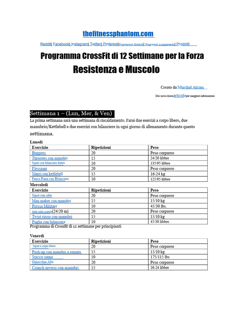 La prima settimana sarà una settimana di riscaldamento. Farai due esercizi a corpo libero, due