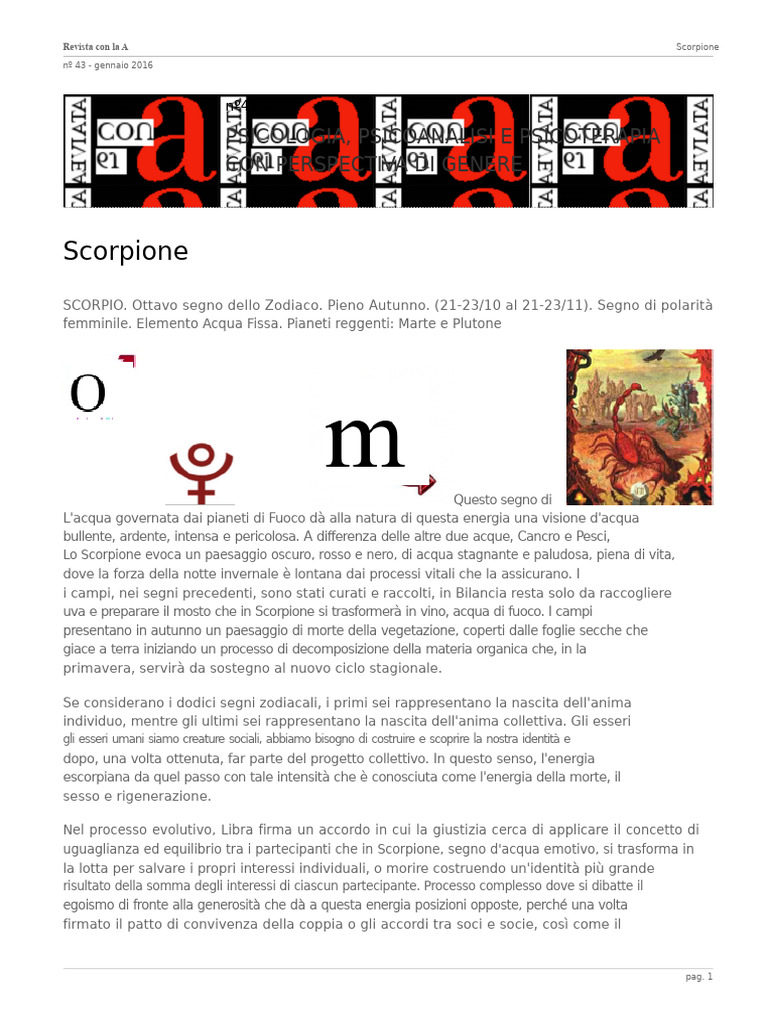 SCORPIO. Ottavo segno dello Zodiaco. Pieno Autunno. (21-23/10 al 21-23/11). Segno di polarità