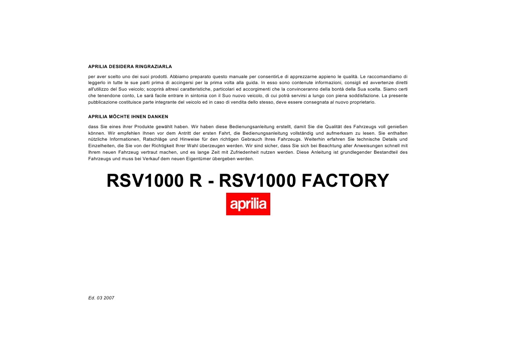 Copyright 2006- aprilia. Alle Rechte vorbehalten. Jegliche Reproduktion, auch nur teilweise, ist untersagt. aprilia - After sales service.