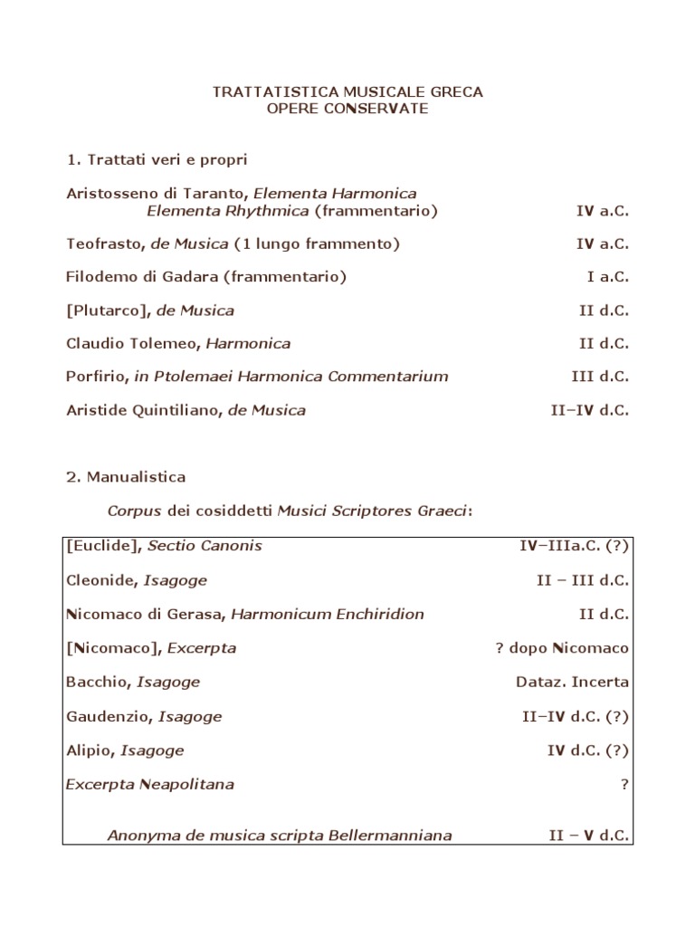TRATTATISTICA MUSICALE GRECA OPERE CONSERVATE 1.