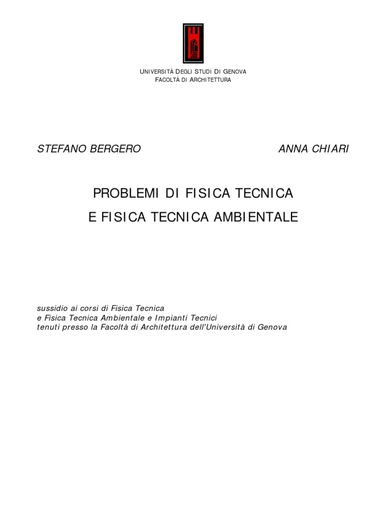 sussidio ai corsi di Fisica Tecnica e Fisica Tecnica Ambientale e Impianti Tecnici tenuti presso la Facolt di Architettura dell'Universit di Genova