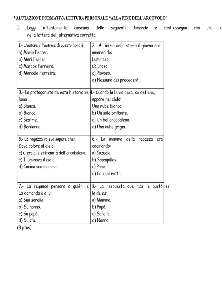 4.-Qual è la parte che ti è piaciuta di più di questa storia? Spiega perché. (2 ptos)