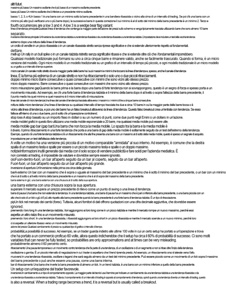 micro canale Un canale molto stretto dove la maggior parte delle barre ha i suoi massimi e minimi che toccano la linea di tendenza e, spesso, anche il canale di tendenza