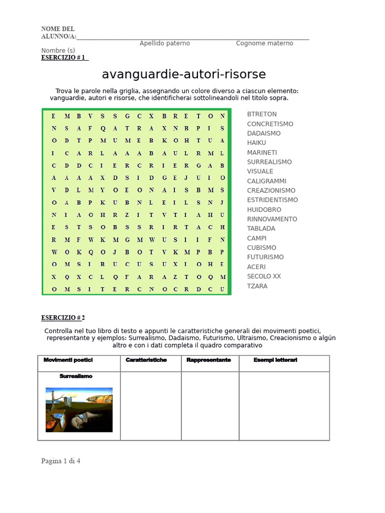 vanguardie, autori e risorse, che identificherai sottolineandoli nel titolo sopra.