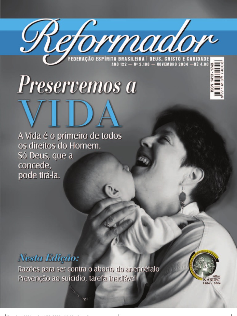 A presena do Consolador Juvanir Borges de Souza Ao e reao Orson Peter Carrara Proteo espiritual Mauro Paiva Fonseca Razes para ser contra o aborto do anencfalo Marlene Nobre A distrao Marcelo Paes Barreto A propsito dos anencfalos Zalmino Zimmermann Pgina do caminho Albino Teixeira Preveno ao suicdio, tarefa inadivel Gerson Simes Monteiro O suicdio Allan Kardec Das Glias lugdunenses s terras mineiras Kleber Halfeld Sofrimento e eutansia Emmanuel Selo comemora o Bicentenrio de Nascimento de Allan Kardec Espritas de 33 pases no Congresso de Paris Mensagem de Lon Denis (Texto original) Liberdade com o Espiritismo Gabriel Delanne Um Natal decente Richard Simonetti Bicentenrio de Kardec na FEB Solenidade na Sede Seccional Rio de Janeiro Invocao a Jesus Francisco Thiesen Direito e Justia. Direito e Moral Um conflito a resolver Jos Carlos Monteiro de Moura Congresso Esprita Paraibano