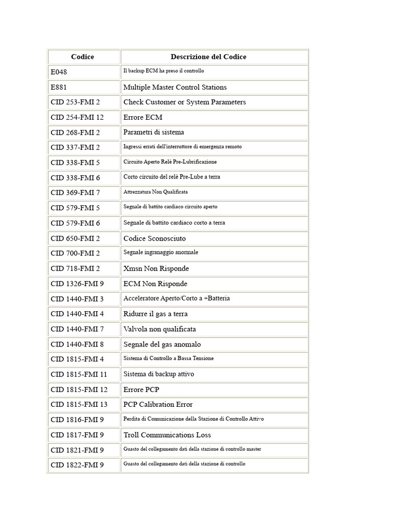 CID 650-FMI 2 Codice Sconosciuto