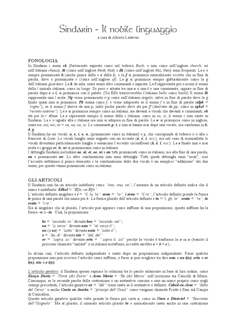saranno. Per questo ringrazio Helge Fauskanger, autore dell`Ardalambion e Gianluca Comastri che lo ha