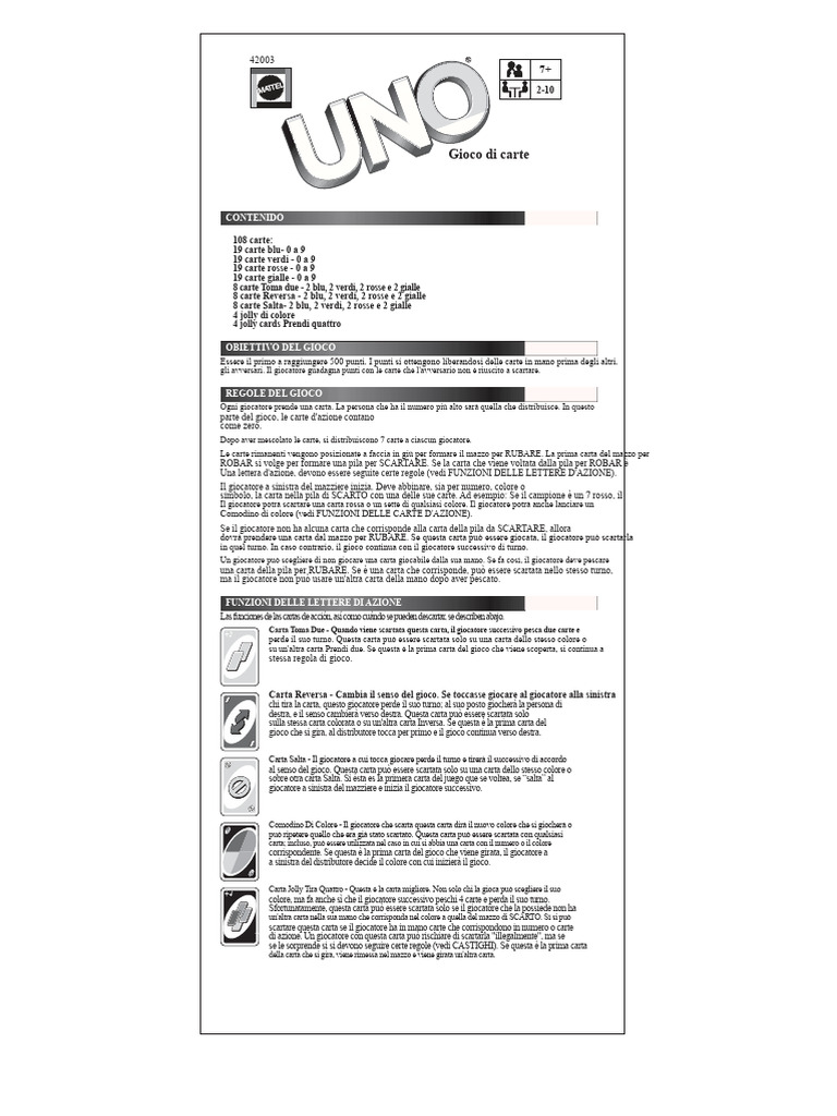 al senso del gioco. Questa carta può essere scartata solo su una carta dello stesso colore o