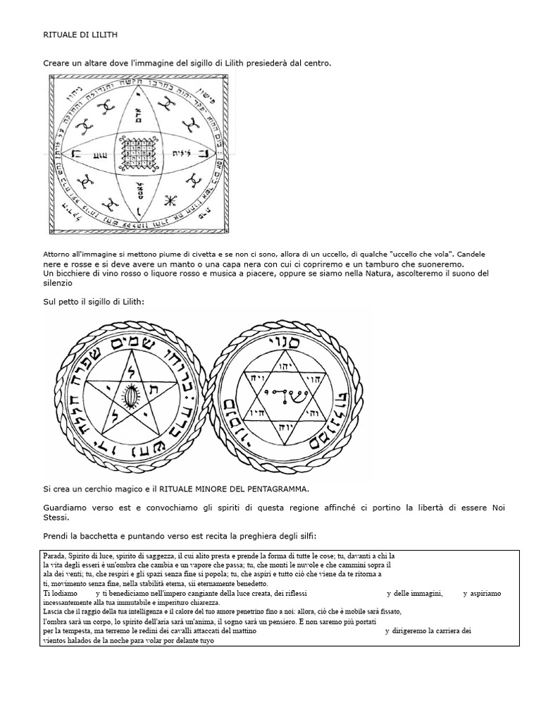 serpenti e uccelli, vieni a Me!!. Oh, Lilith!, grande demone e grande donna, tu che sei la grande amante