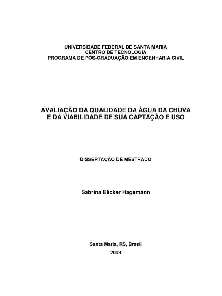 Palavras-chave: Água de chuva, qualidade da água, aproveitamento.