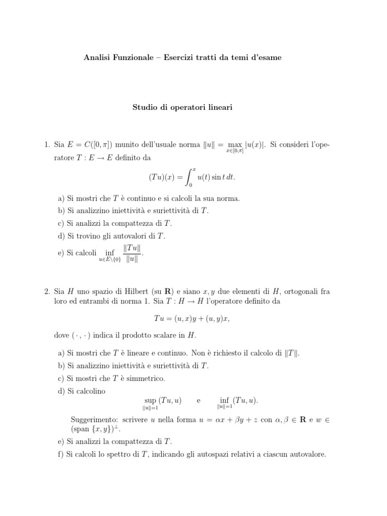 1. Sia E = C([0, ]) munito dellusuale norma u = max |u(x)|. Si consideri lopex[0,]