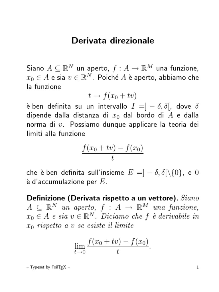 Allora la derivata in (0, 0) rispetto a v = (1, 2) vale