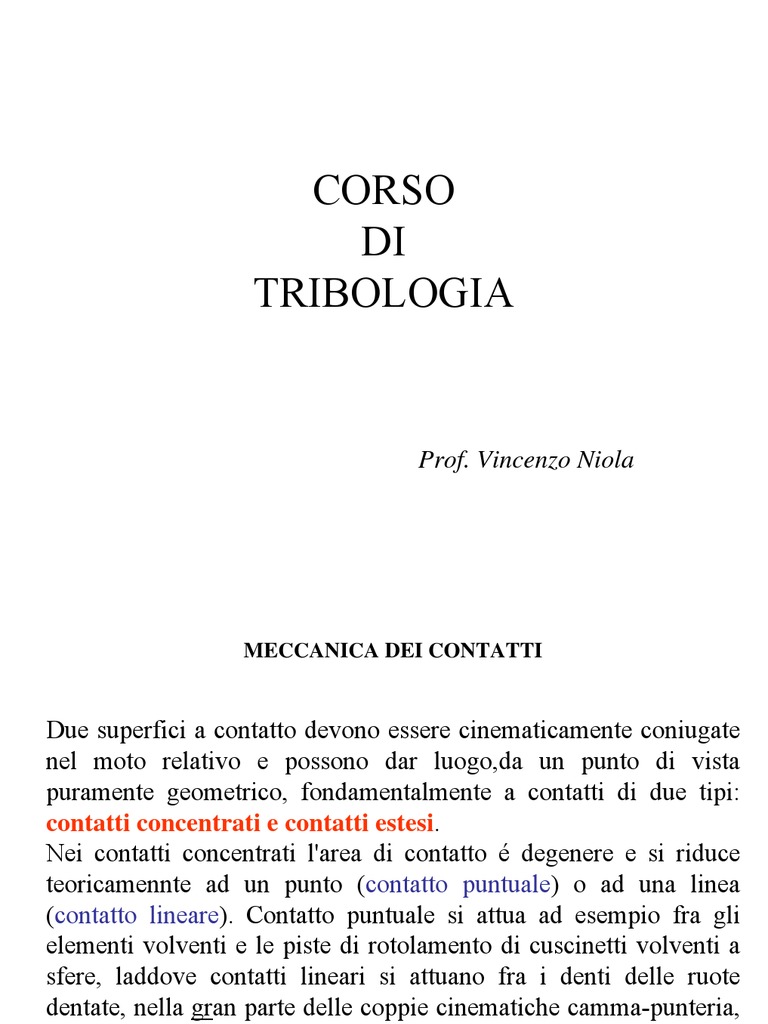 Due organi di macchine in moto relativo sono posti a contatto diretto quando si richiede che essi sviluppino forze di attrito considerevoli o quando le condizioni di lavoro non consentono l'interposizione di un lubrificante fra le superfici. E' bene, per, notare che contatto diretto si realizza anche negli organi di macchine lubrificati, nelle fasi in cui risulta impossibile l'instaurarsi di un film continuo di lubrificante. E' quanto si verifica, ad esempio, nelle fasi transitorie (avviamento e arresto), nelle brusche variazioni di regime e, in generale. in tutte le condizioni in cui si verifica la crisi del film lubrificante a causa di fenomeni generalmente di tipo termo-meccanico.