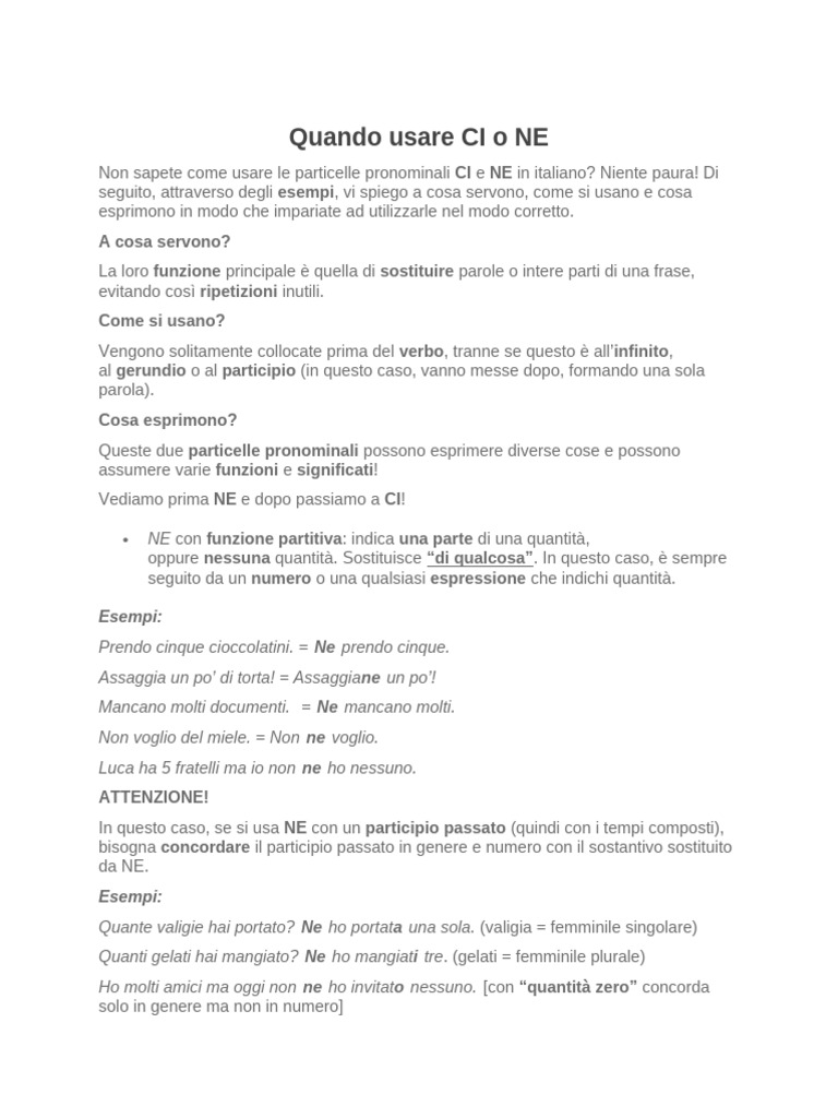Non sapete come usare le particelle pronominali CI e NE in italiano? Niente paura! Di