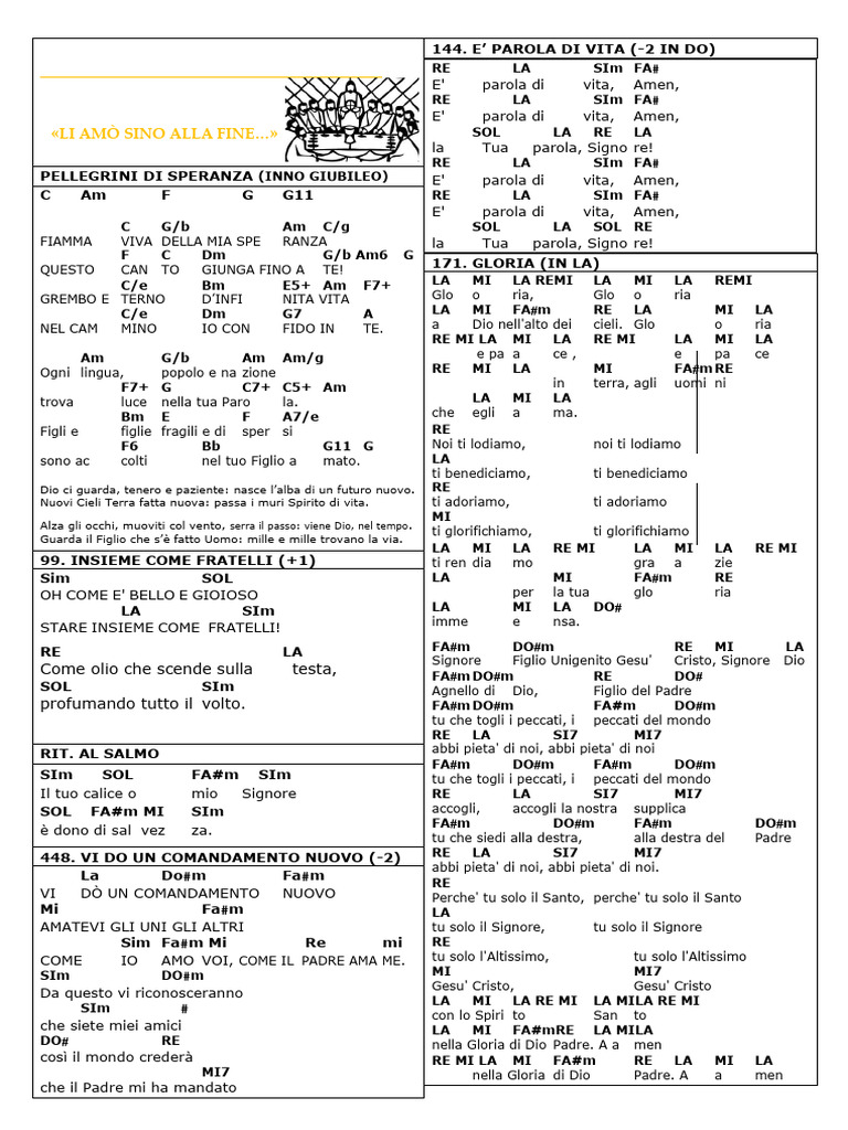 PELLEGRINI DI SPERANZA (INNO GIUBILEO) E' parola di vita, Amen,
