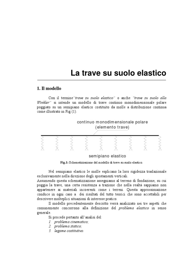 Con il terminetrave su suolo elastico o anche trave su suolo alla Winkler si intende un modello di trave continuo monodimensionale polare poggiato su un semipiano elastico costituito da molle a distribuzione continua come illustrato in Fig.(1).