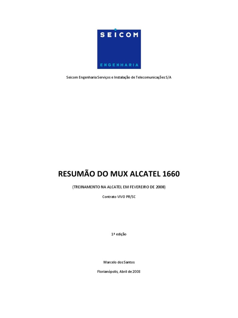 11. Anotar qual a porta da matriz este AU4 pegou (esta informao ser necessria quando for fazer a cross); 12. Clicar duas vezes na caixa do VC4 para abrir as 3 caixas do TUG-3; 13. Selecionar o TUG-3 desejado (uma vez) e clicar em Transmission Structure TPs TU12; 14. Clicar no TUG-2 desejado e no TU-12 desejado (depende do KLM que vc quer usar dentro do VC4); Estruturando o AU4 Proteo Na tela inicial do NE clicar em Views Transmission; Clicar em Transmission Add TP; No campo Equipment marcar o RACK-1; No campo Class selecione AU4 (este AU4 ser o lado PROTEO); Clicar em Search; O campo Termination Points ser preenchido com as opes disponveis; Escolher o AU4 desejado; Clicar em OK; Clicar no cone do AU4 na janela Transmission uma vez; Clicar em Transmission Terminate TP; Anotar qual a porta da matriz este AU4 pegou (esta informao ser necessria quando for fazer a cross); 12. Clicar duas vezes na caixa do VC4 para abrir as 3 caixas do TUG-3; 13. Selecionar o TUG-3 desejado (uma vez) e clicar em Transmission Structure TPs TU12; 14. Clicar no TUG-2 desejado e no TU-12 desejado (depende do KLM que vc quer usar dentro do VC4); 1. 2. 3. 4. 5. 6. 7. 8. 9. 10. 11. Fazendo a cross-conexo 1. Selecione o TU-12 desejado (ver o KLM) e clicar em Transmission Cross Connection Create Cross Connection; 2. Selecione Bidirectional, Protected e clique no boto Choose do campo Output; 3. No campo Equipment marcar o RACK-1; 4. No campo Class selecione TU12; 5. Clicar em Search; 6. O campo Termination Points ser preenchido com as opes disponveis; 7. Escolher o TU12 desejado (depende do KLM); 8. Clicar em OK; Criando a proteo 1. clique no boto Choose do campo Prot. Input; 2. No campo Equipment marcar o RACK-1;