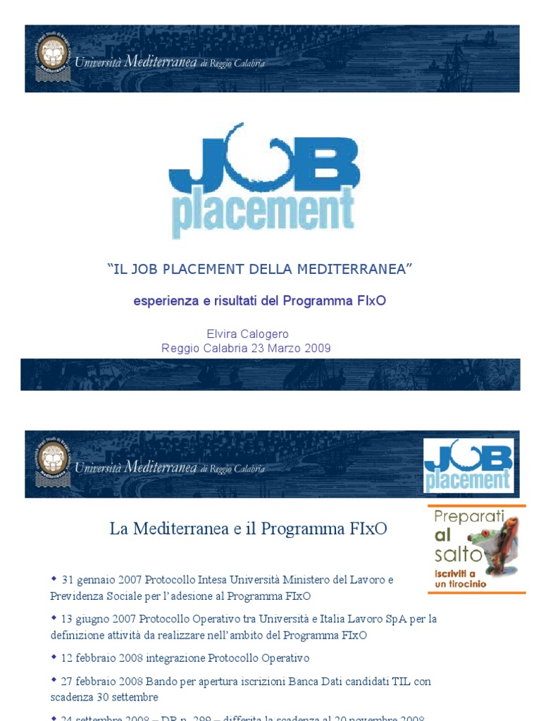 “IL JOB PLACEMENT DELLA MEDITERRANEA”