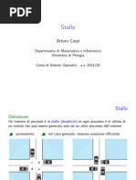 Il concetto fondamentale che sta alla base della riduzione di un grafo di Holt la certezza che un processo, per evolvere, prima o poi terminer sicuramente la sua elaborazione rilasciando le risorse che sta utilizzando e quindi non un ostacolo per quei processi che utilizzano la stessa risorsa e la stanno aspettando: le risorse diventeranno libere e il grafo ridotto evidenzia questa situazione. Esso risulta utile perch permette di individuare situazioni critiche di blocco del sistema (stallo) Il grafo ridotto ottenuto eliminando le situazioni in cui un processo in grado di evolvere e in cui liberer le risorse che sta utilizzando a favore di altri processi: un processo non attende nessuna risorsa e ha pertanto solo frecce entranti nei processi (risorse assegnate) senza quelle uscenti (risorse in sospeso)