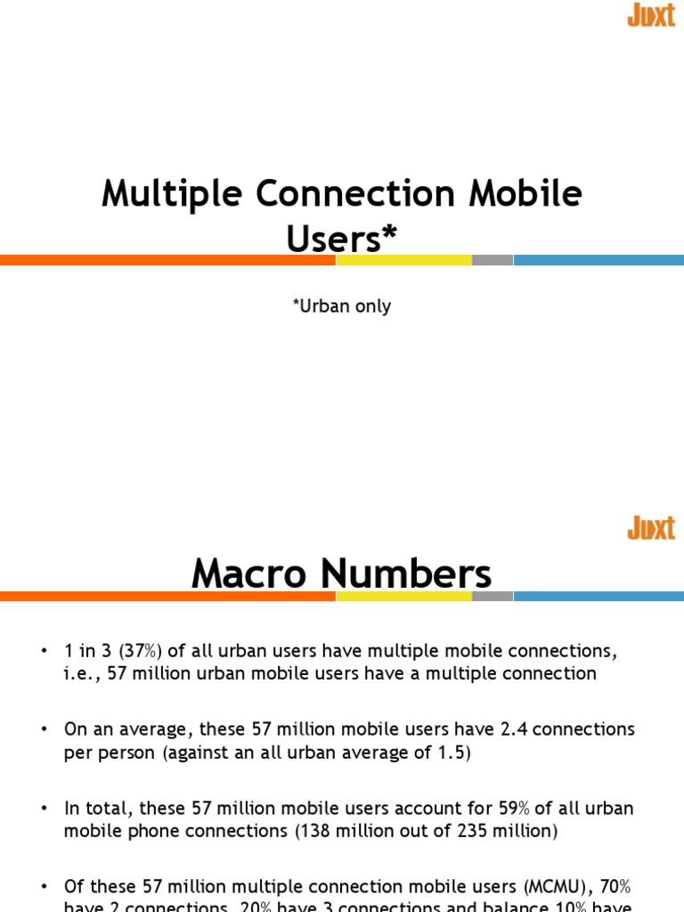 • 1 in 3 (37%) of all urban users have multiple mobile connections,