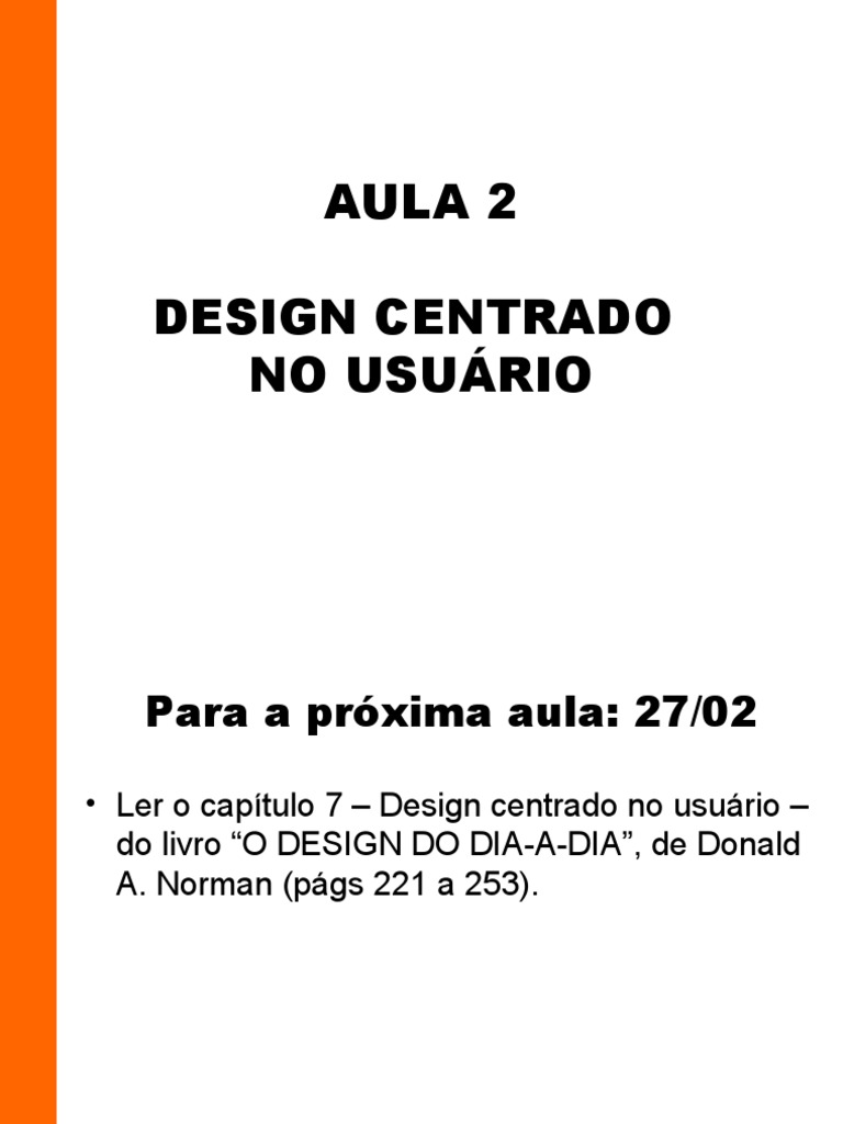 • Ler o capítulo 7 – Design centrado no usuário –