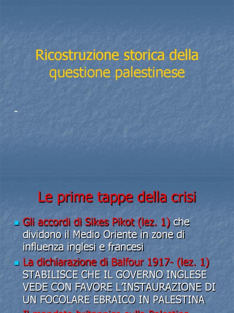 1) La creazione di uno Stato palestinese. I palestinesi vogliono proclamare in