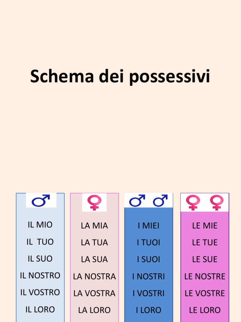 IL TUO LA TUA I TUOI LE TUE IL SUO LA SUA I SUOI LE SUE IL NOSTRO LA NOSTRA I NOSTRI LE NOSTRE IL VOSTRO LA VOSTRA I VOSTRI LE VOSTRE IL LORO LA LORO I LORO LE LORO