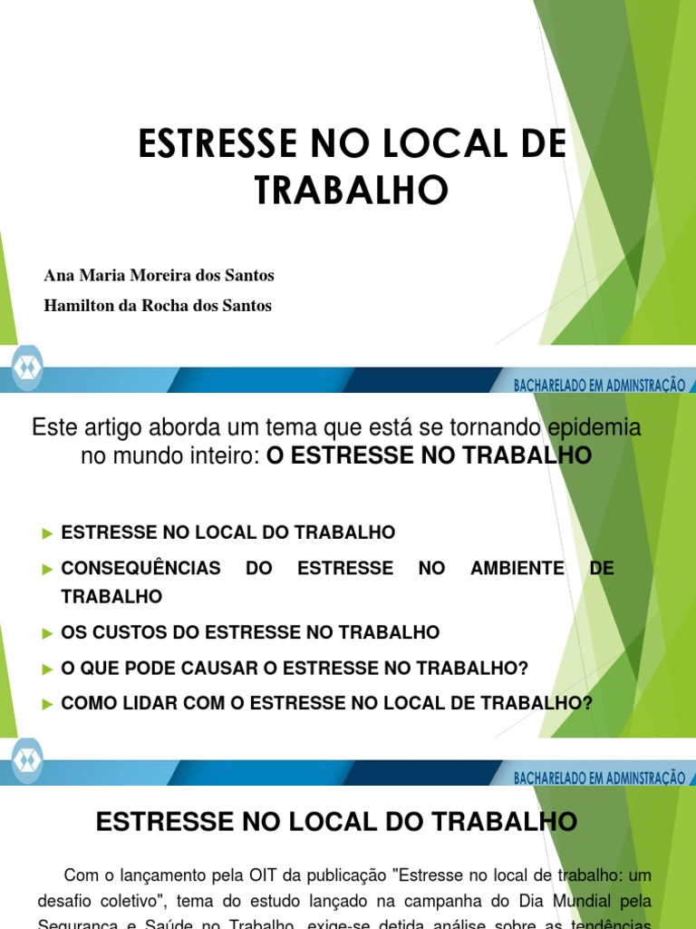 no mundo inteiro: O ESTRESSE NO TRABALHO