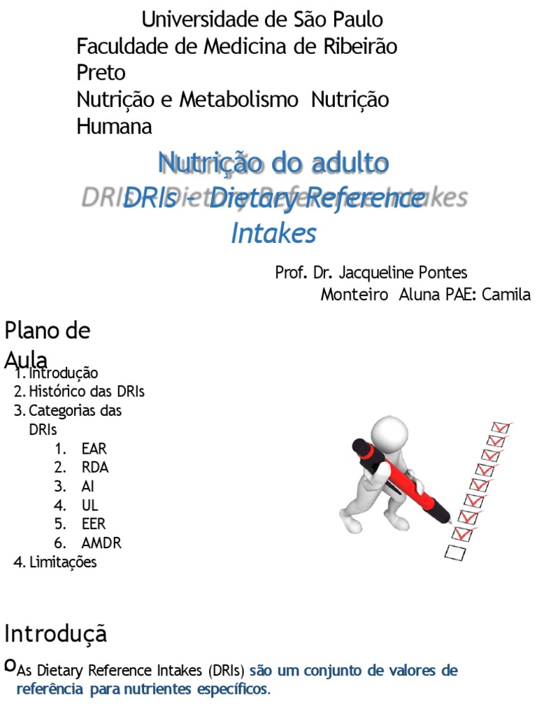 •oO profissional ou pesquisador, ao aplicar as DRIs, deve avaliar criticamente