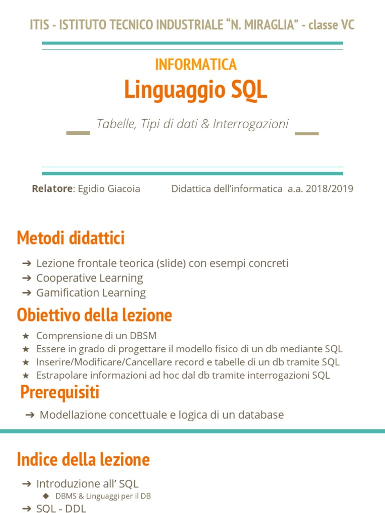 Il linguaggio SQL (Structured Query Language) è un linguaggio non