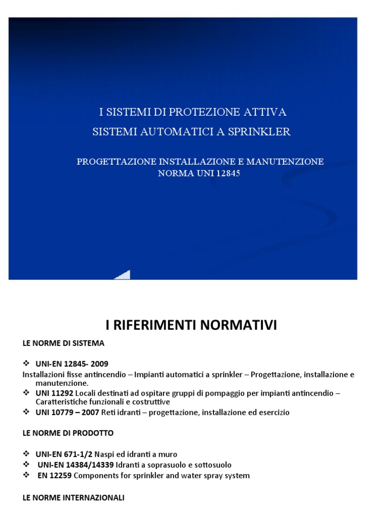 Installazioni fisse antincendio – Impianti automatici a sprinkler – Progettazione, installazione e
