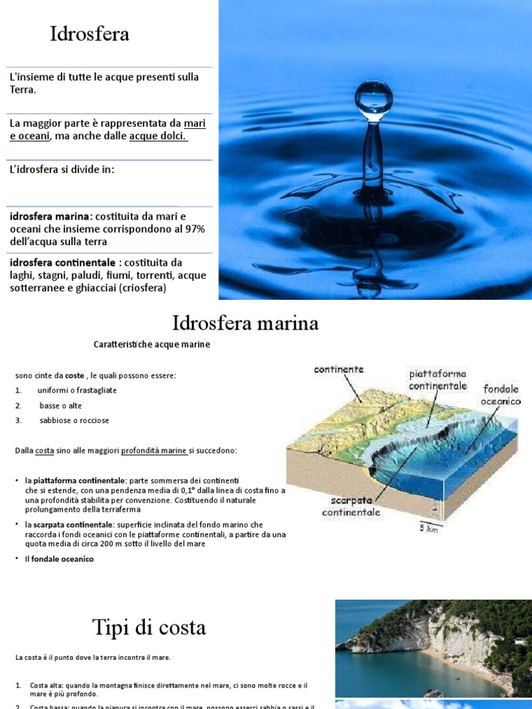 • Falesia: costa uniforme alta e rocciosa caratterizzata da una scarpata molto ripida dovuta