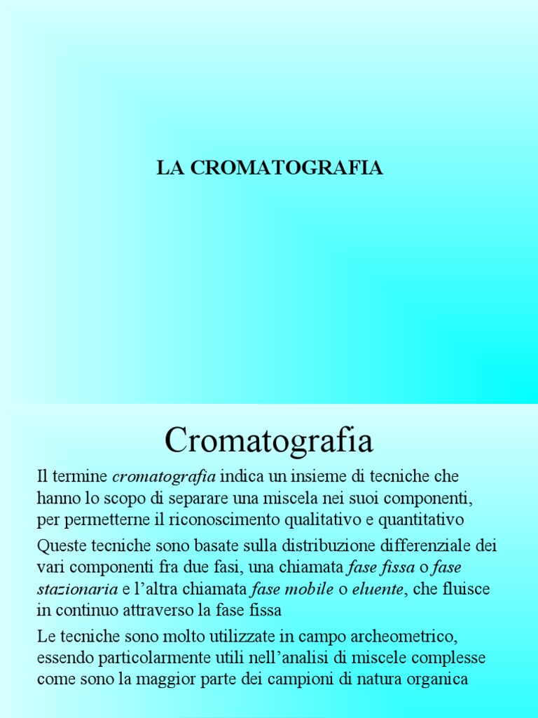 diagnostico. Si possono separare sostanze appartenenti a varie