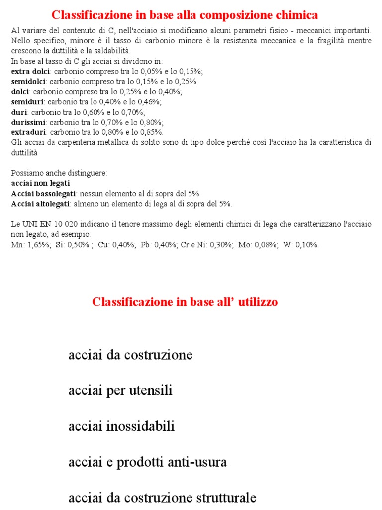 Le UNI EN 10 020 indicano il tenore massimo degli elementi chimici di lega che caratterizzano l'acciaio