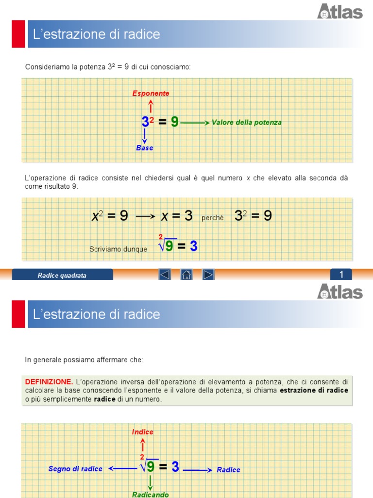 L’operazione di radice è l’operazione inversa di potenze di esponente diverso: 3, 4, 5 … ecc.; si