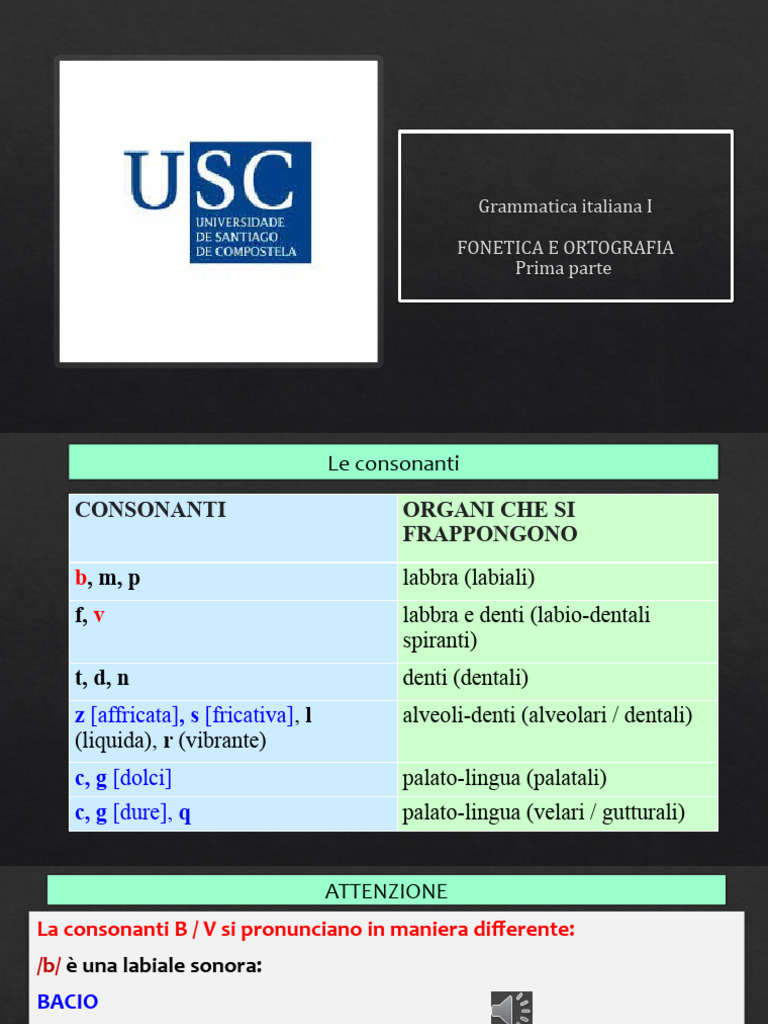CONSONANTI ORGANI CHE SI