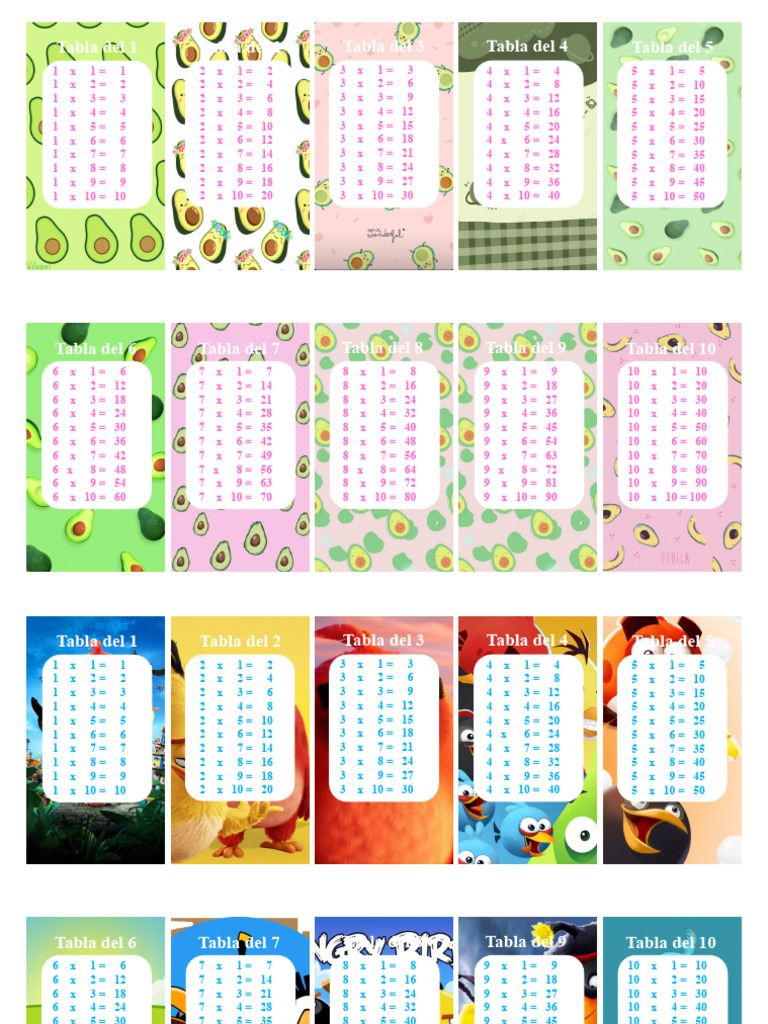 Tabla del 6 Tabla del 7 Tabla del 8 Tabla del 9 Tabla del 10