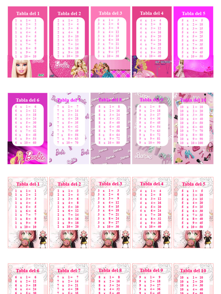 Tabla del 6 Tabla del 7 Tabla del 8 Tabla del 9 Tabla del 10