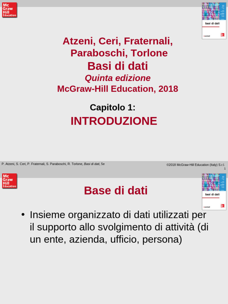 P. Atzeni, S. Ceri, P. Fraternali, S. Paraboschi, R. Torlone, Basi di dati, 5e ©2018 McGraw-Hill Education (Italy) S.r.l.