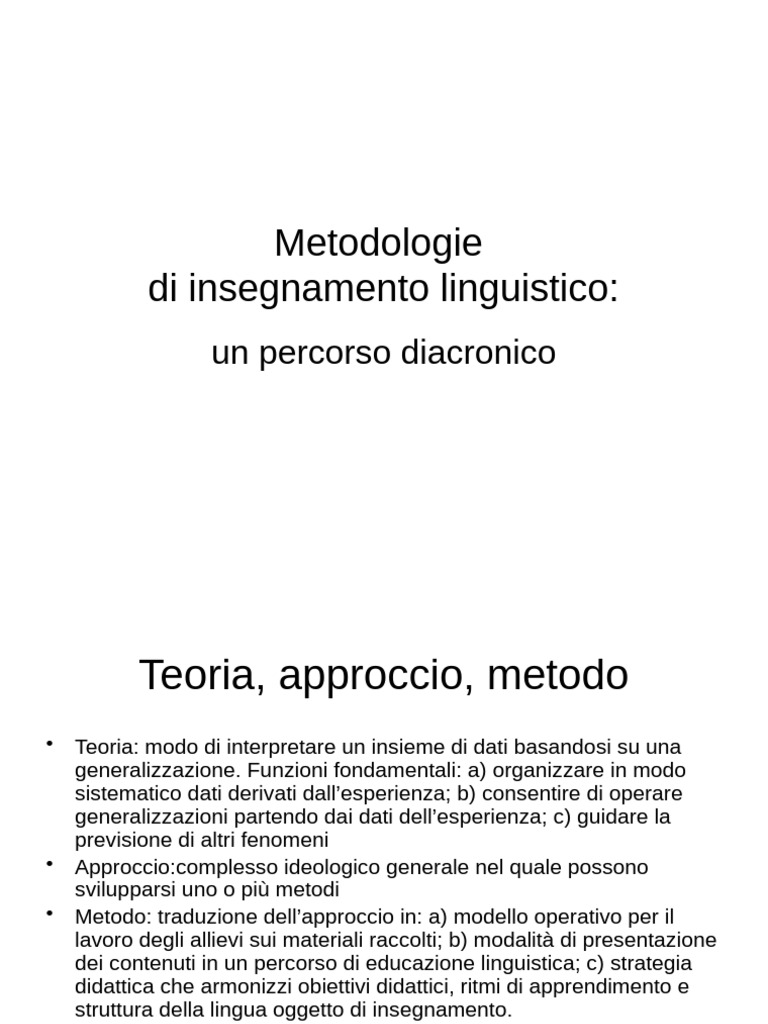 b) Metodi intuitivi: 1. conoscenza pratica della lingua; 2. rifiuto assoluto della