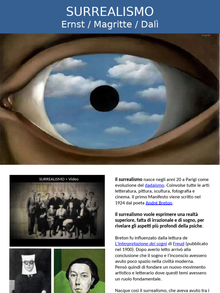 SURREALISMO > Video Il surrealismo nasce negli anni 20 a Parigi come