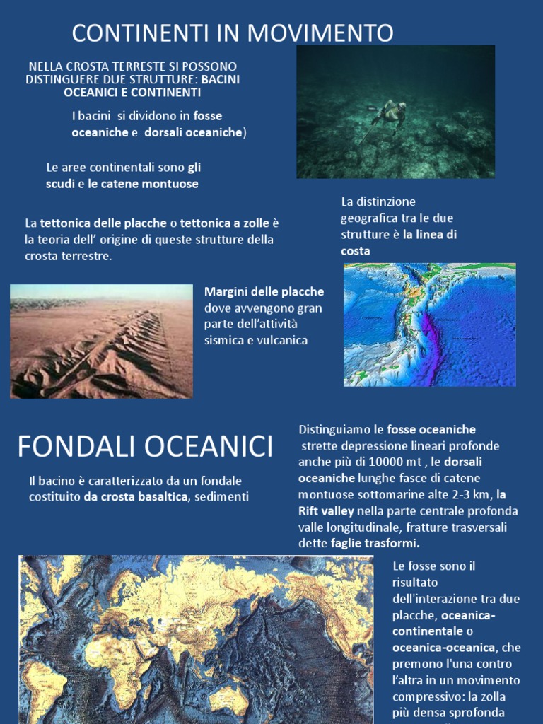 I bacini si dividono in fosse oceaniche e dorsali oceaniche) Le aree continentali sono gli scudi e le catene montuose