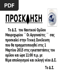 ΕΚΛΟΓΕΣ ΝΕΟΥ Δ.Σ. Ν.Ο.ΜΑΥΡΟΧΩΡΙΟΥ ΣΤΙΣ 1/3/2015